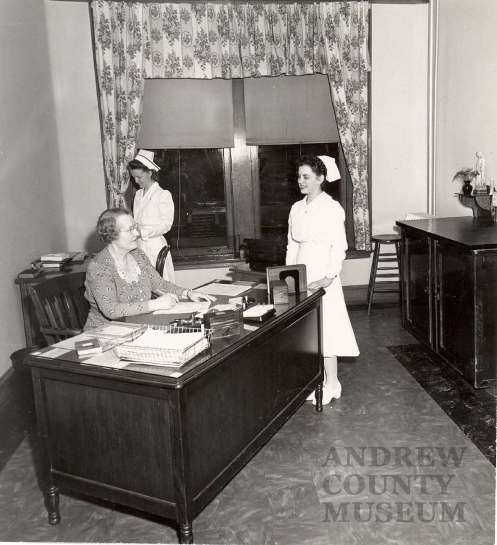 over the years. Above, nurses on the staff participate in a light-hearted mock photo op.