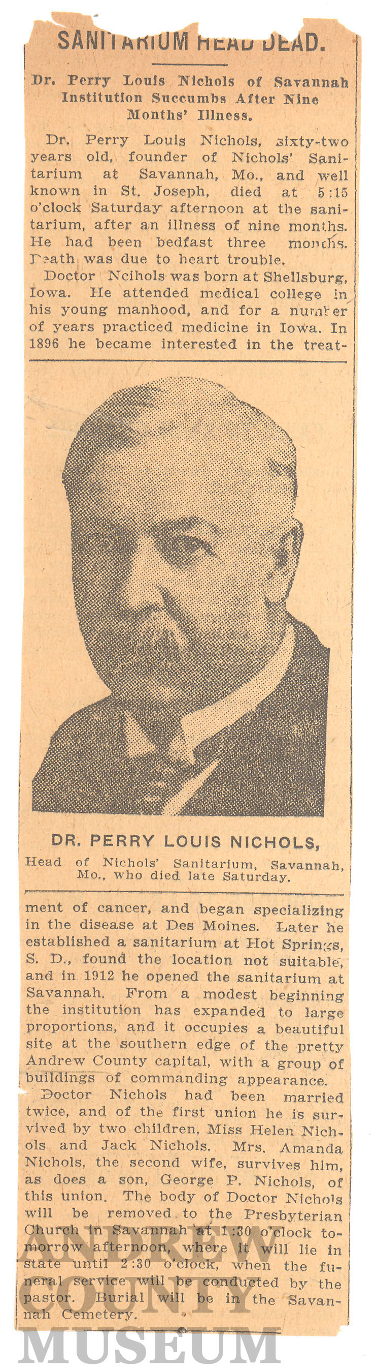The Nichols Sanatorium was an enormous boon to the local