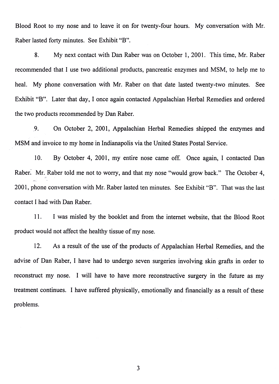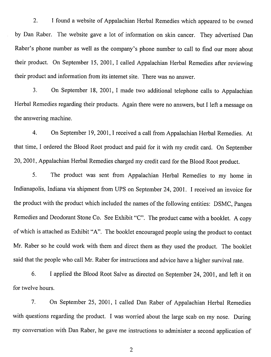 September 24, 2001, she applied Raber's Bloodroot Salve,